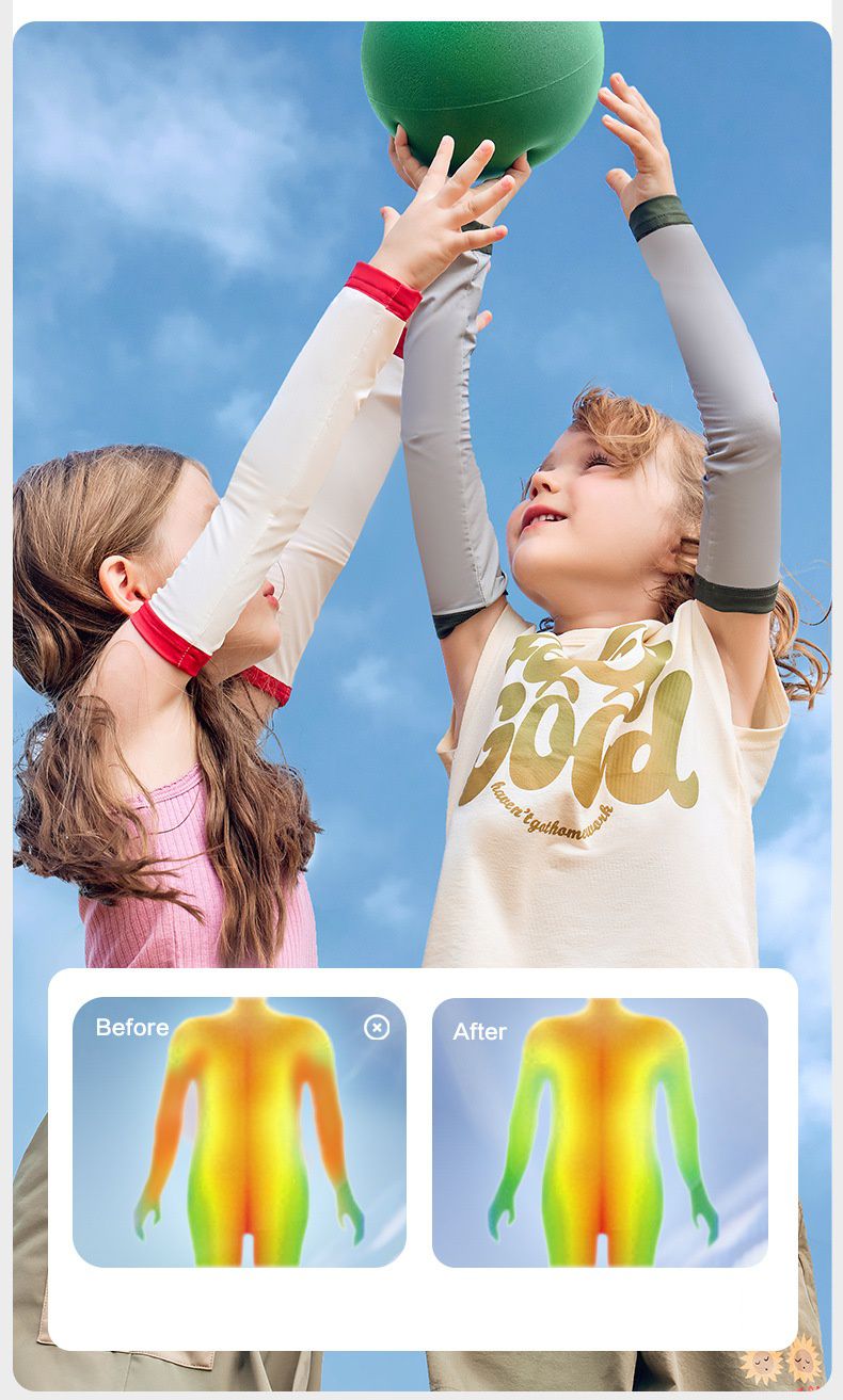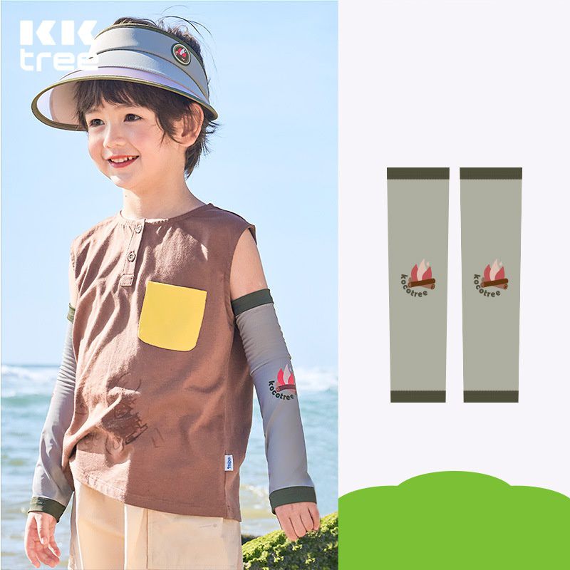 加長款涼感兒童防曬袖套-縷縷晨陽棕 (33x7.5cm)