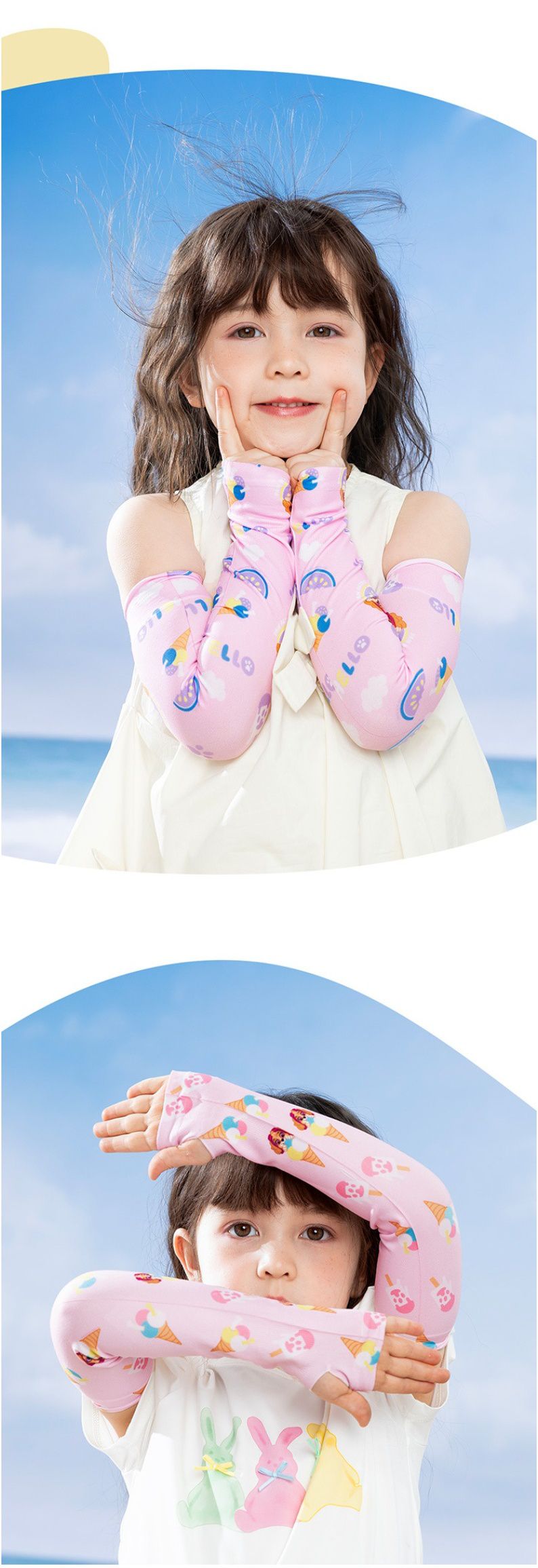 冰絲涼感兒童防曬袖套-滿版卡通人物天天-粉紫 (31.5x7.5cm)