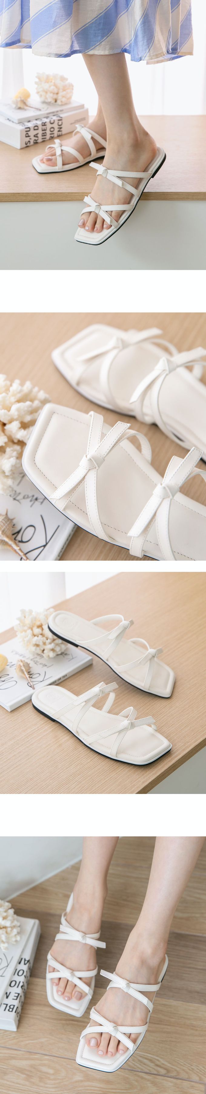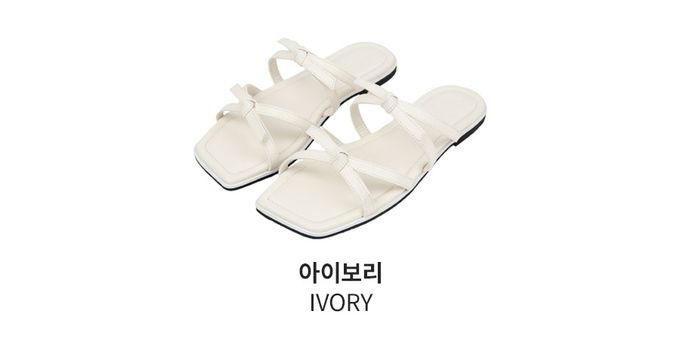 韓國 PINKELEPHANT - 雙蝴蝶結綁帶平底拖鞋(1cm)-象牙白