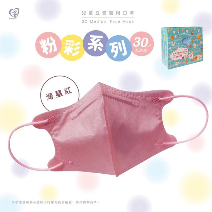 品名:立體3D 5-10歲兒童醫療口罩30入/盒-海星紅