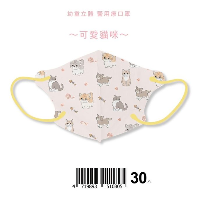 • 品名:天心 立體3D 2-4歲 幼幼醫療口罩30入/盒-可愛貓咪