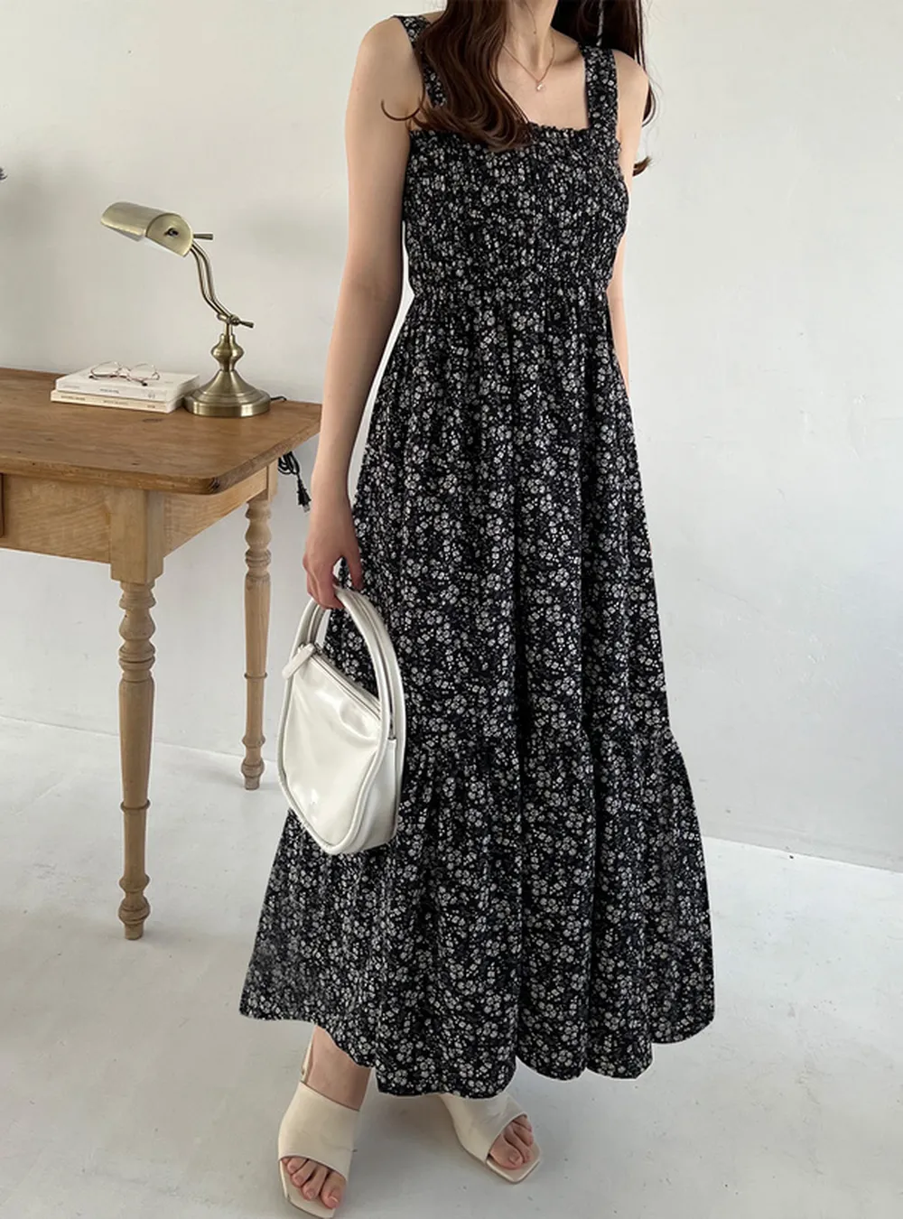 • 品名:滿版浪漫小花縮腰背心長洋裝