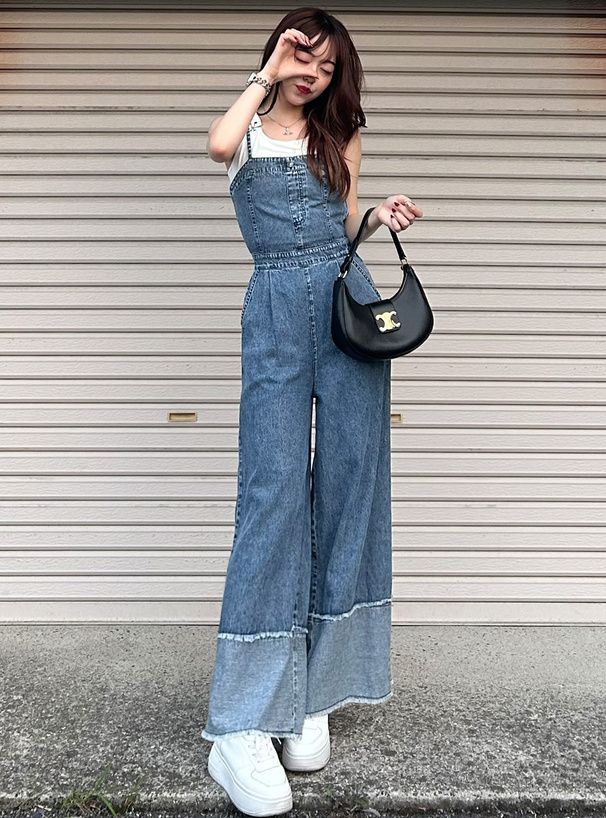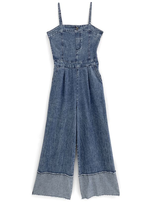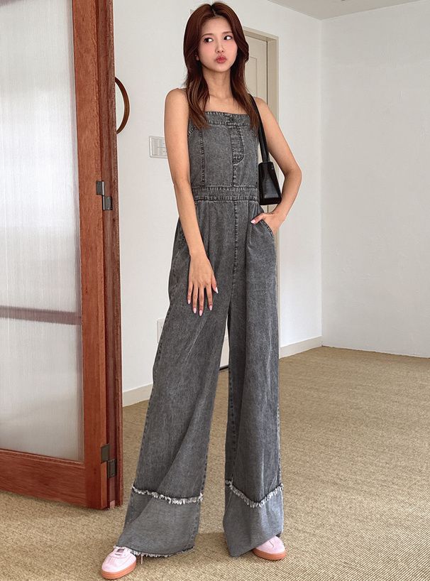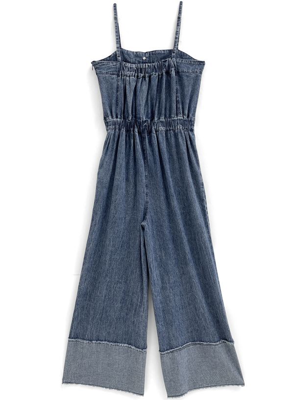 復古感長腿吊帶丹寧寬褲