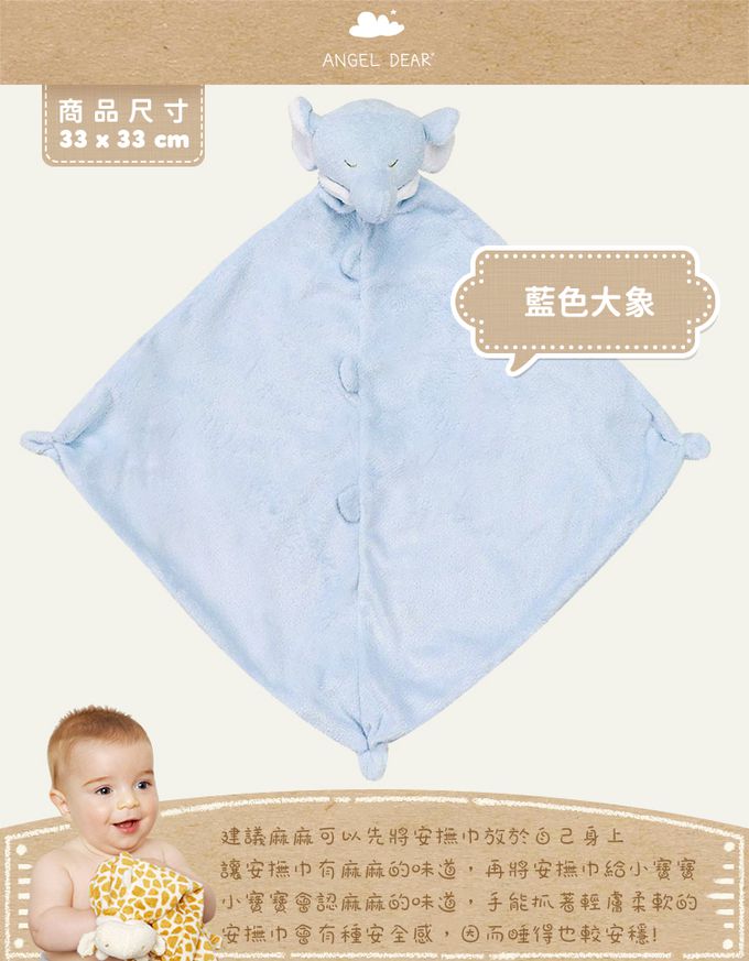 美國 Angel Dear - 嬰兒安撫巾-藍色大象