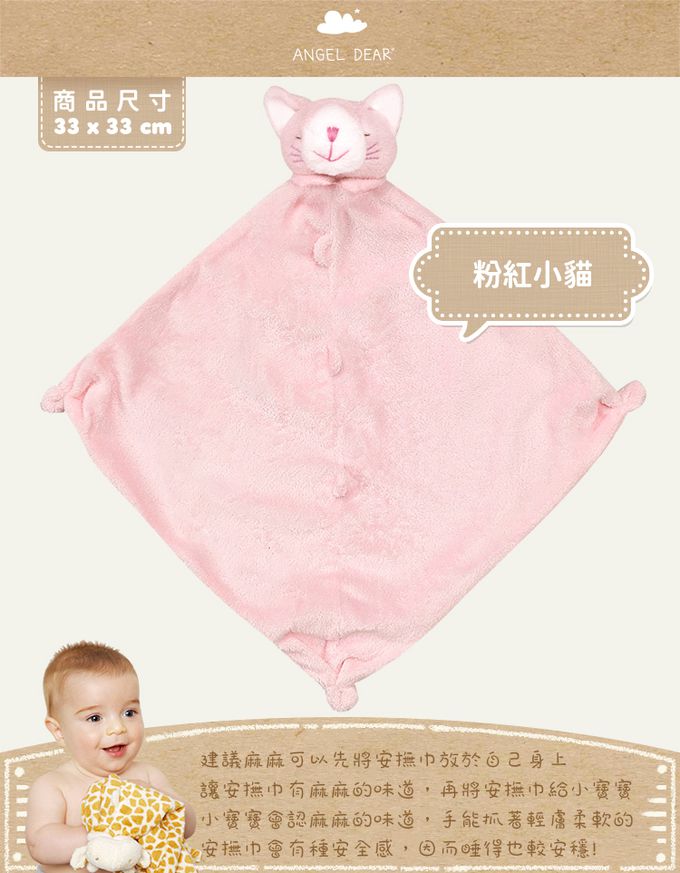 美國 Angel Dear - 嬰兒安撫巾-粉紅小貓