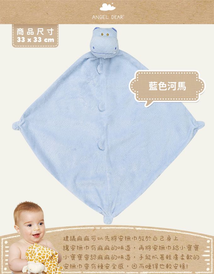 美國 Angel Dear - 嬰兒安撫巾-藍色河馬