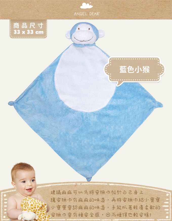 美國 Angel Dear - 嬰兒安撫巾-藍色小猴