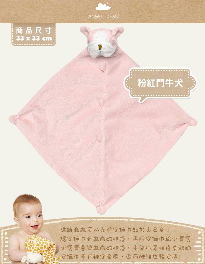 美國 Angel Dear - 嬰兒安撫巾-粉紅鬥牛犬