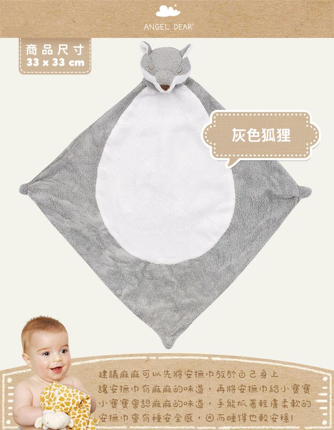 美國 Angel Dear - 嬰兒安撫巾-灰色狐狸