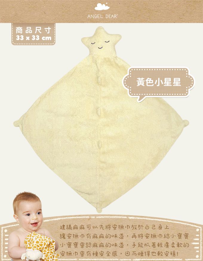美國 Angel Dear - 嬰兒安撫巾-黃色小星星