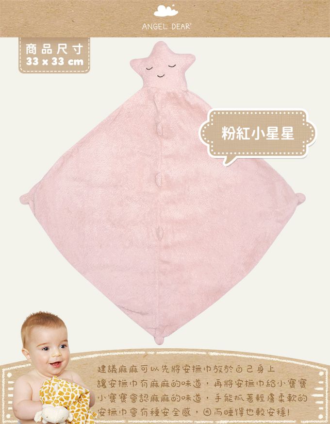 美國 Angel Dear - 嬰兒安撫巾-粉紅小星星