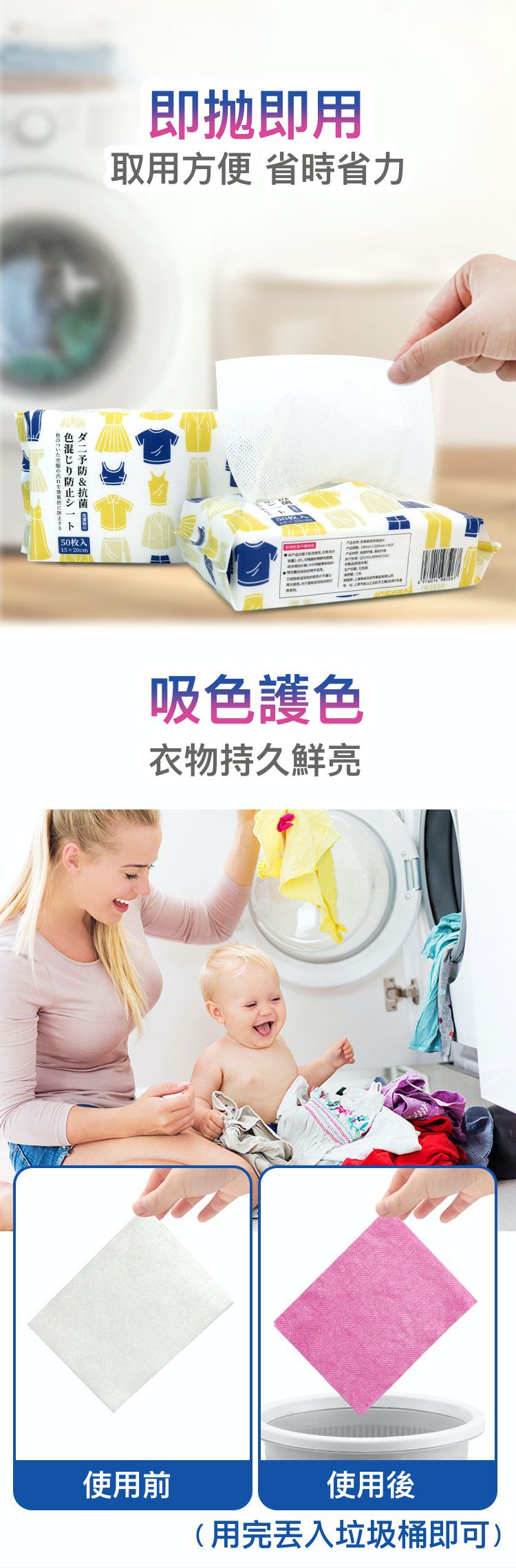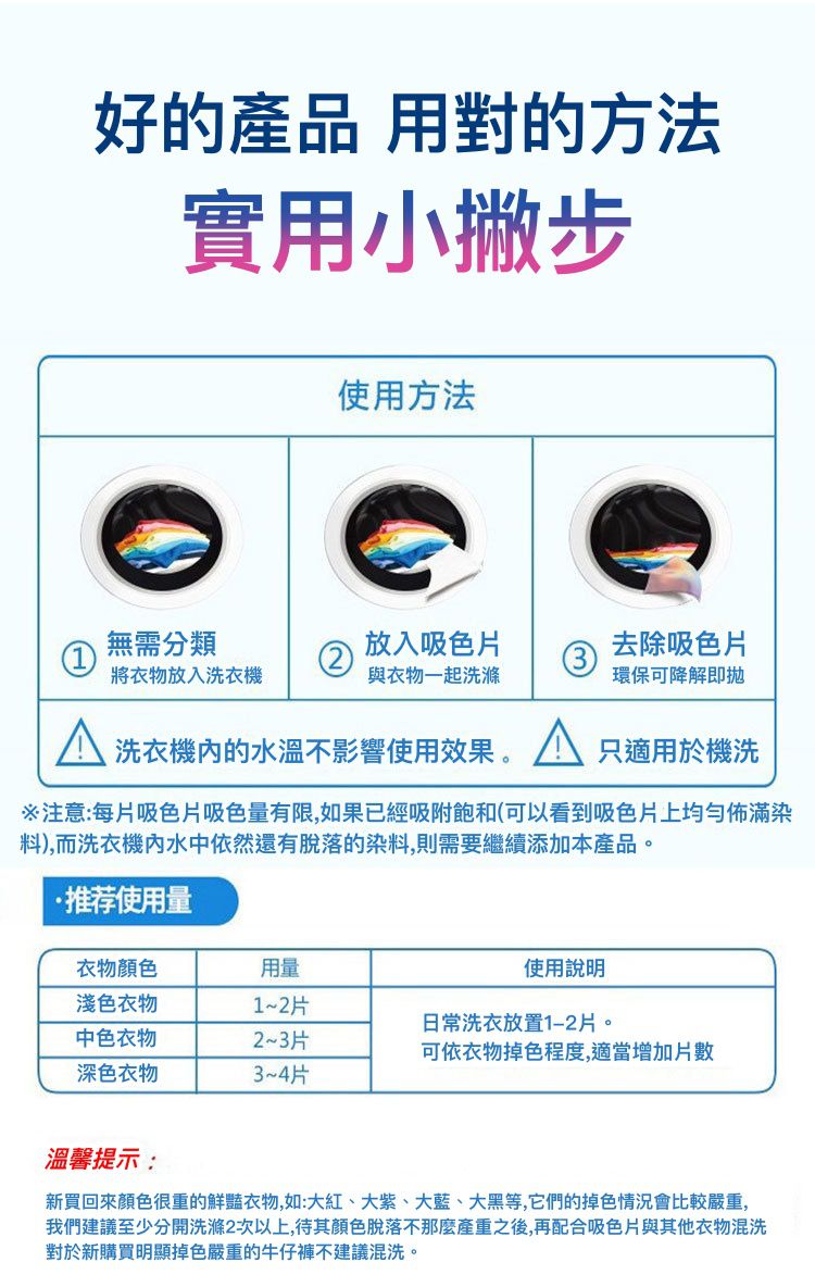 品名:洗衣必備!超神奇防染色、固色護色洗衣紙/吸色片
