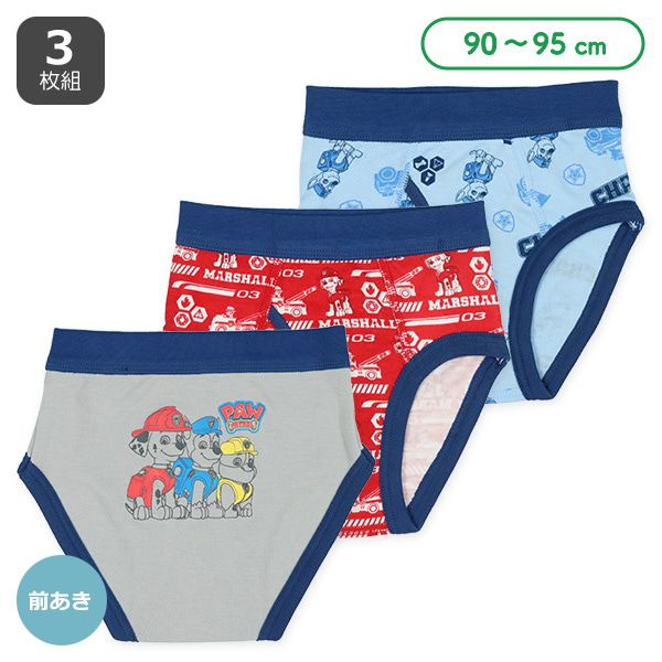 日本西松屋 - 混棉男孩三角內褲(3件組)-卡通人物汪汪隊-藍灰紅