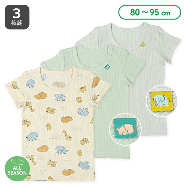 短袖內搭/家居服超值三件組-動物散步-淺綠黃