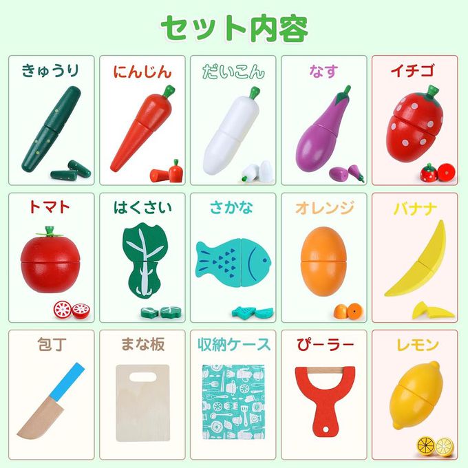 • 品名:兒童仿真木製蔬菜水果切切樂15件組套裝收納玩具