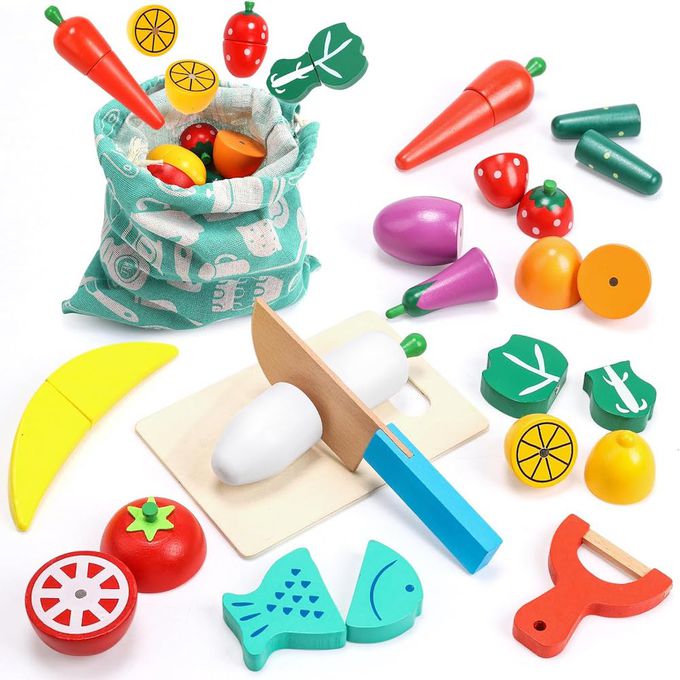• 仿真木質蔬菜水果切切樂套裝玩具
