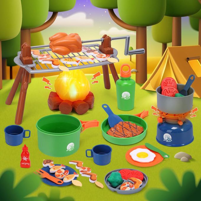 品名:兒童仿真聲光營火露營切切樂套裝玩具