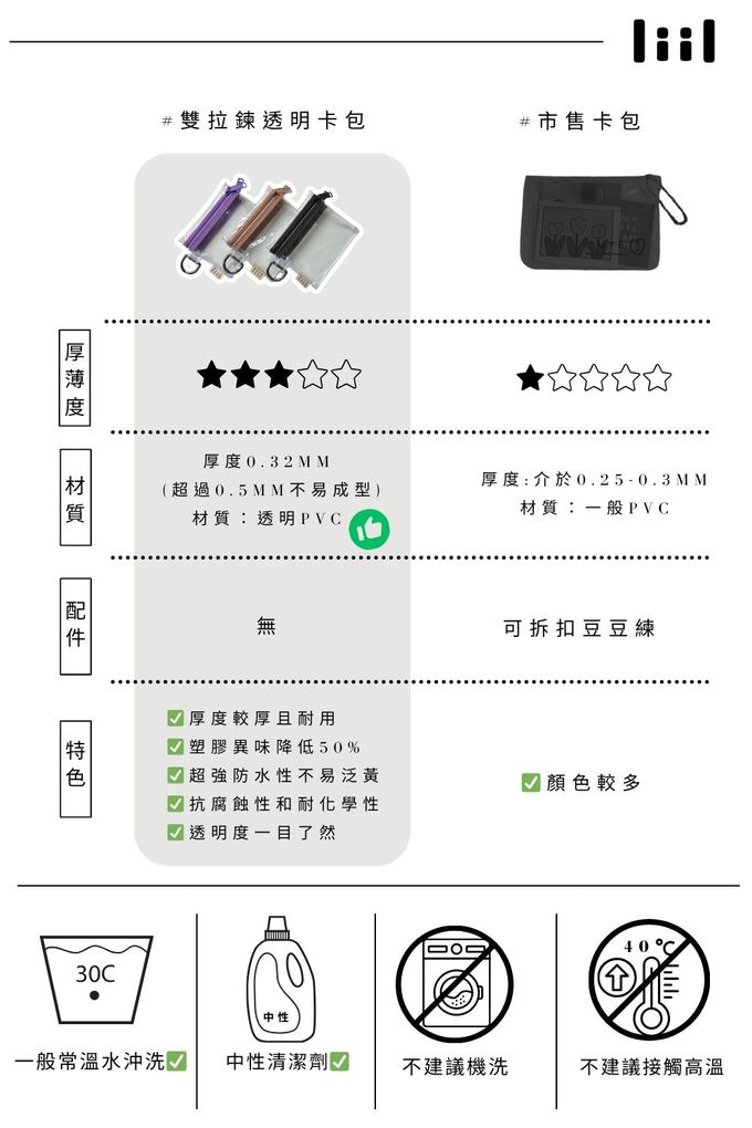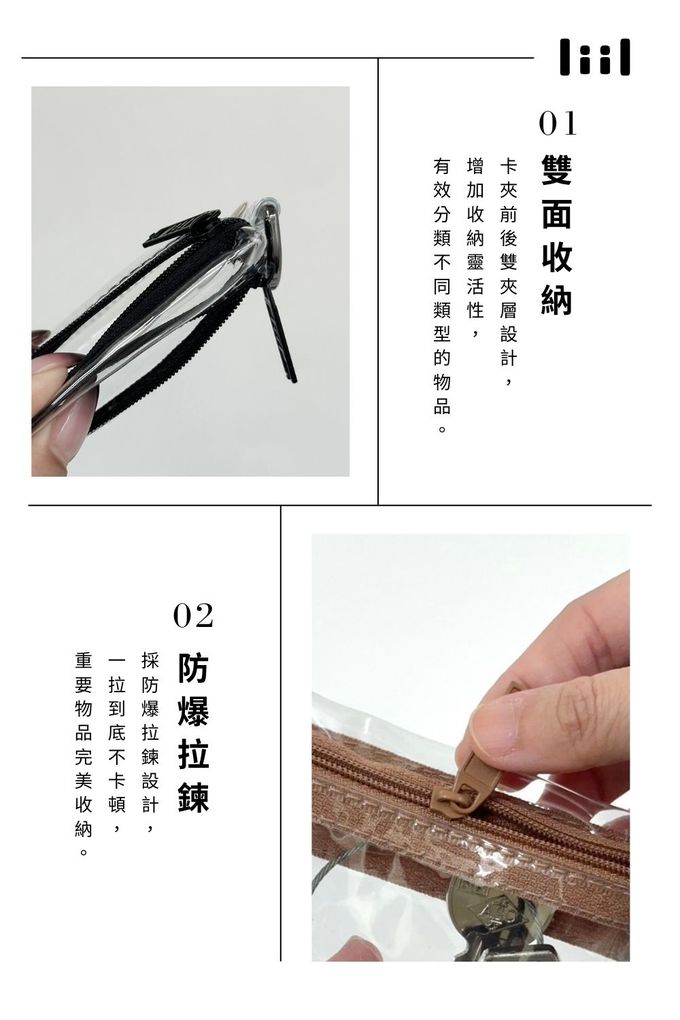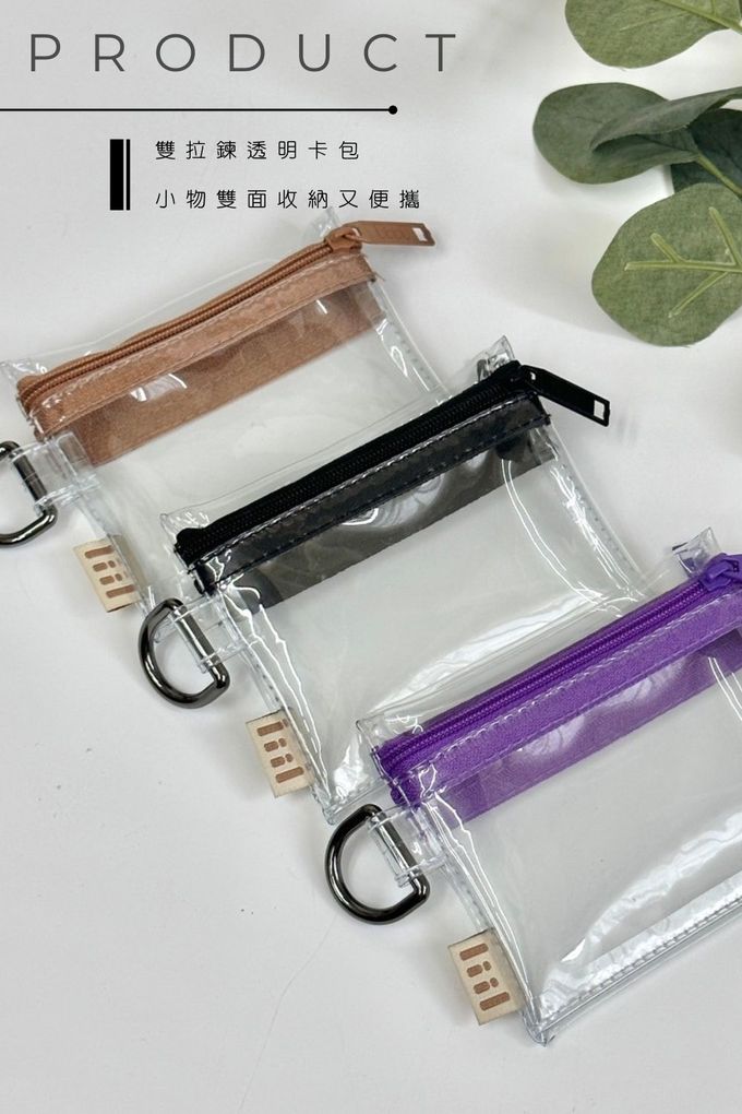 雙拉鍊透明卡包-拿鐵奶 (單入)