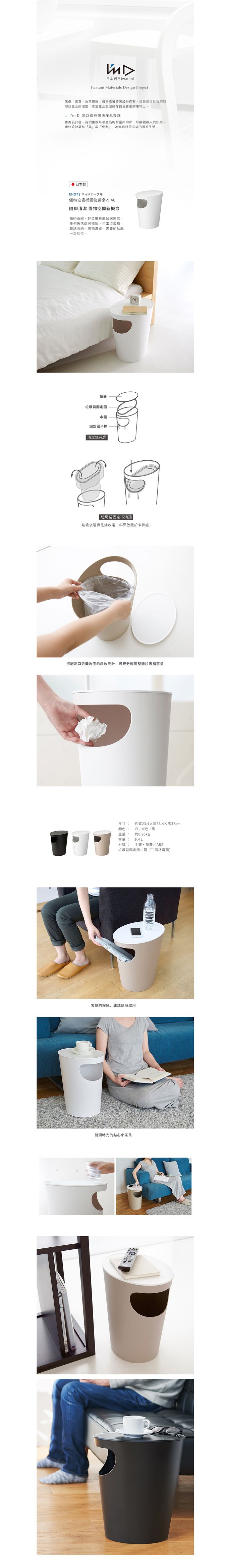 品名:ENOTS儲物垃圾桶置物邊桌-9.4L