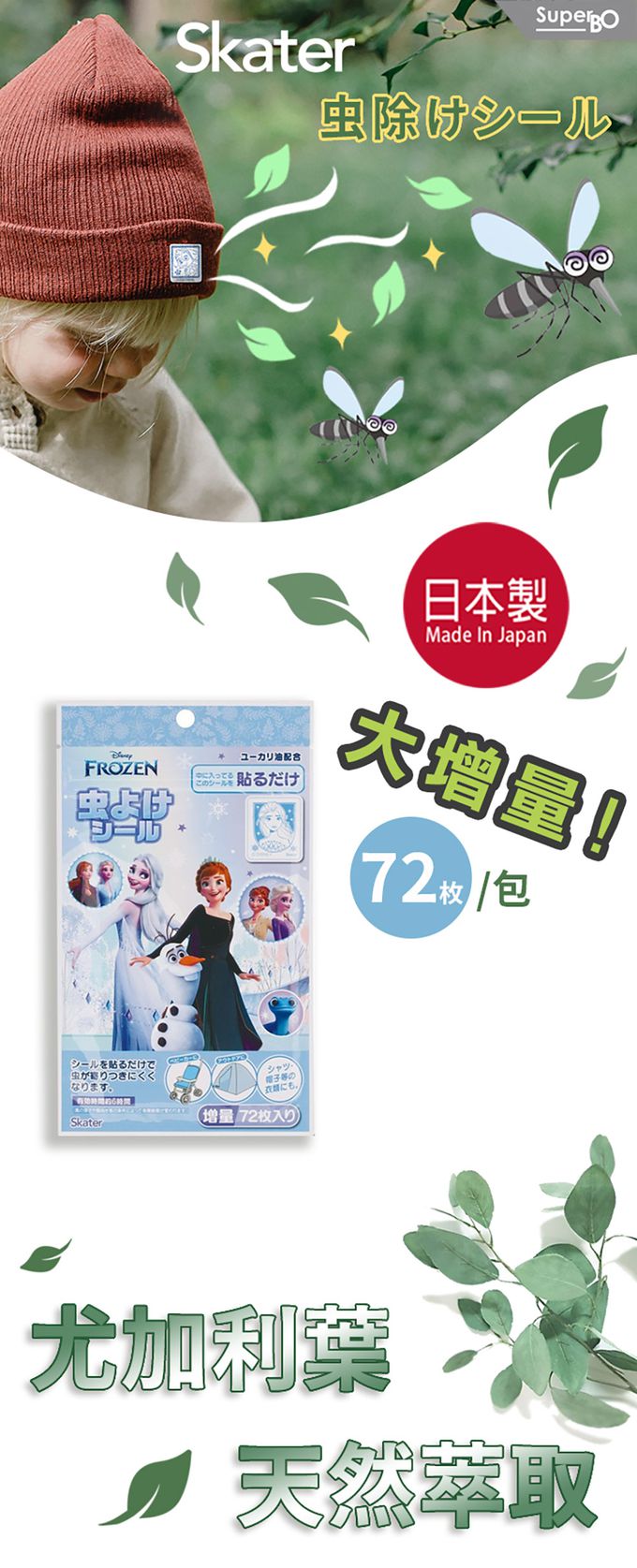 日本 SKATER - 防蚊貼-巧虎-72入