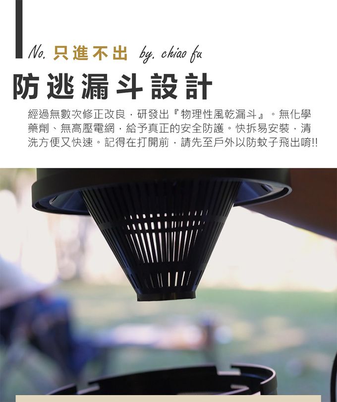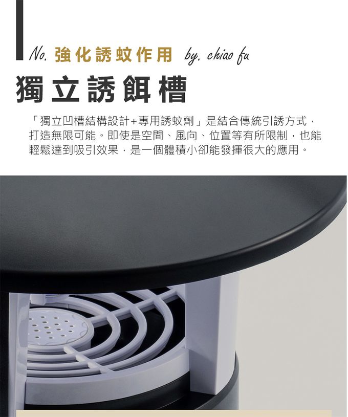 獨立誘餌凹槽 +黏蚊紙,蚊蟲只進不出。