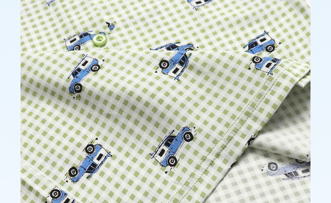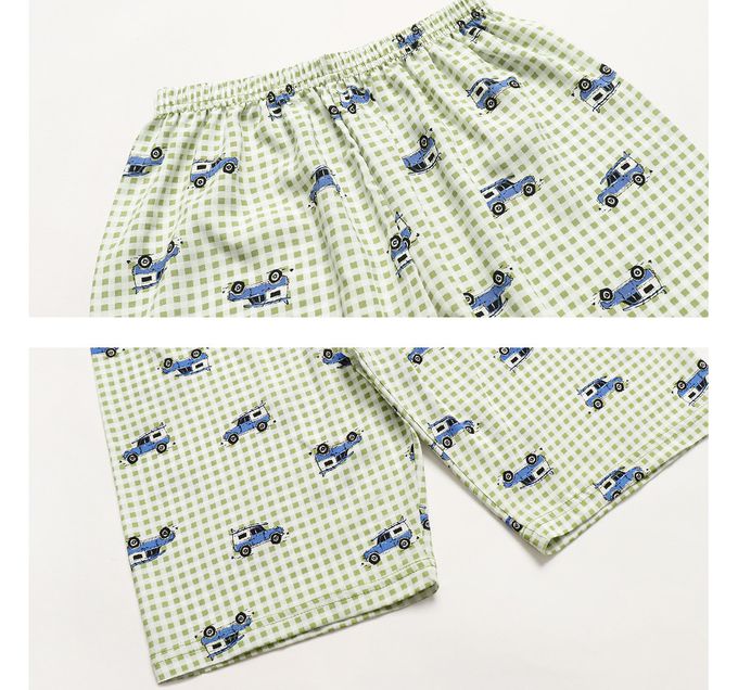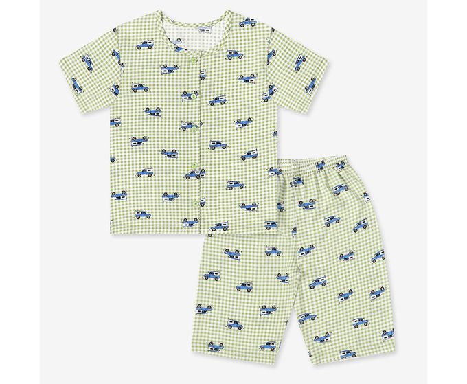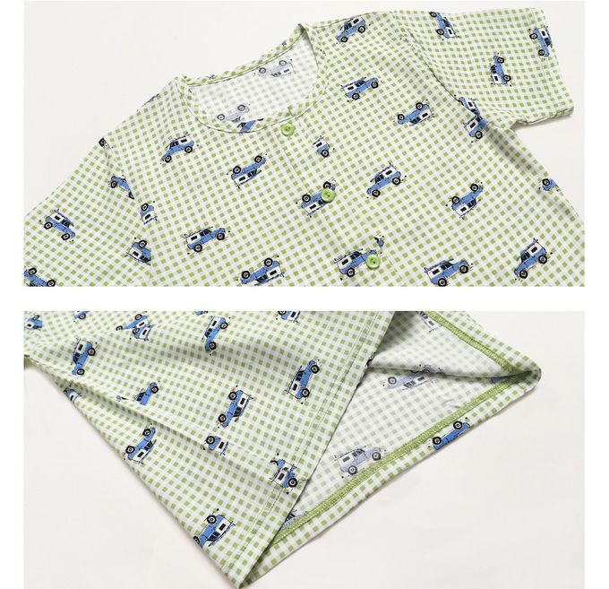 韓國 Mellisse - (COOL)韓製透氣涼感短袖睡衣-格紋車車-綠
