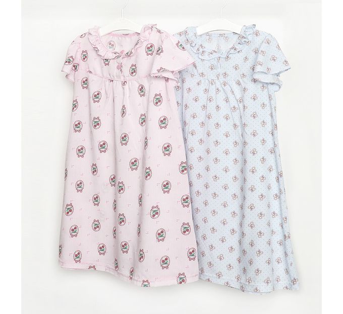 韓國 Mellisse - (COOL)韓製透氣涼感短袖睡裙-點點果實-淡藍