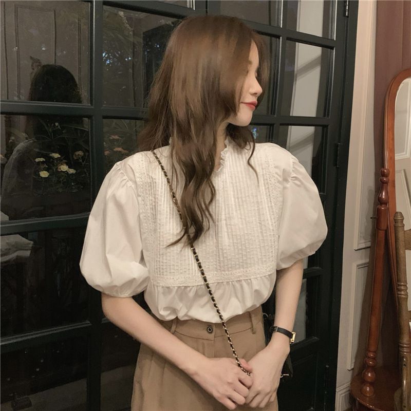 824273 小清新花卉刺繡短袖上衣(一字領/方領)-淡藍色 (F)