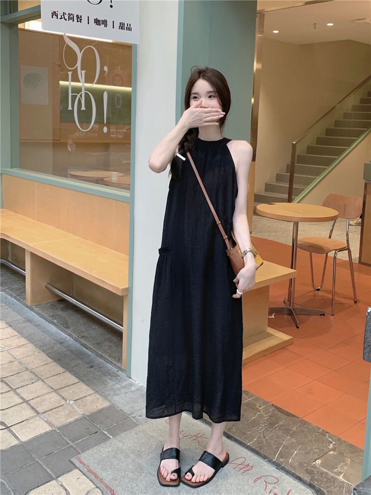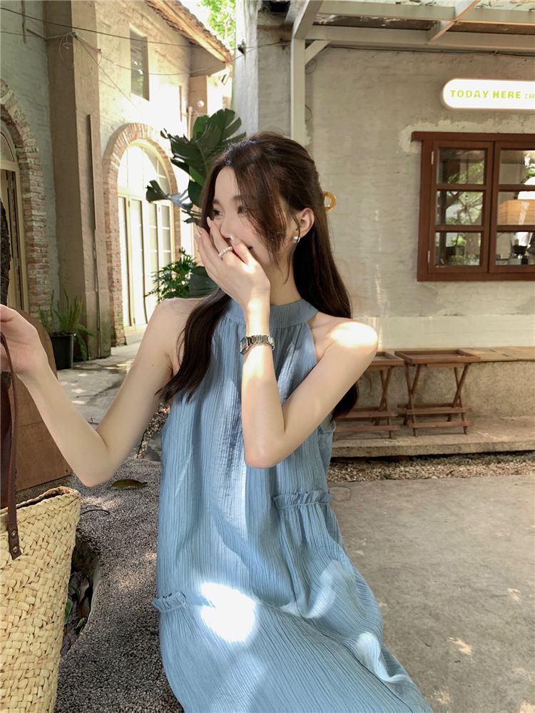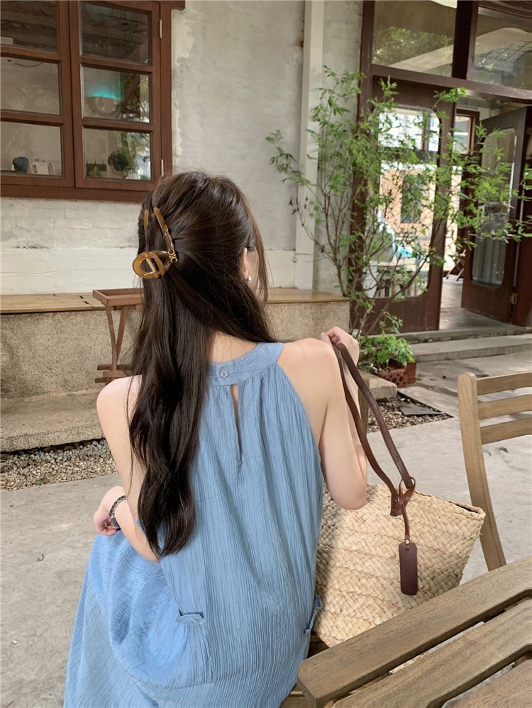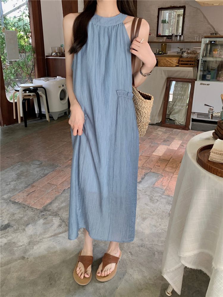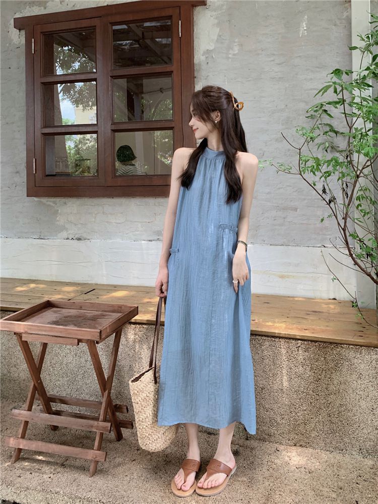840787 修身顯瘦後開衩工裝牛仔長裙-懷舊藍