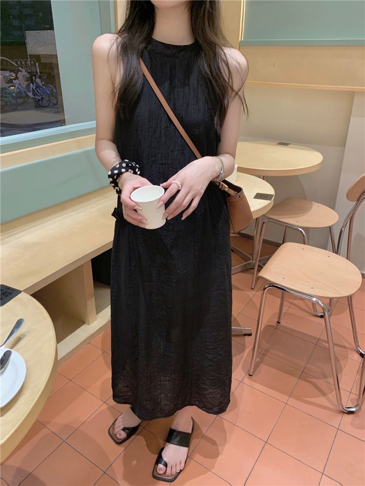 840796 法式優雅方領拼接顯瘦長洋裝-氣質卡其灰(F)