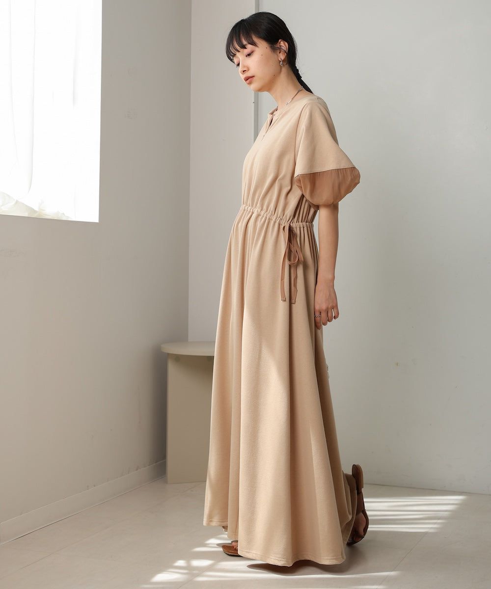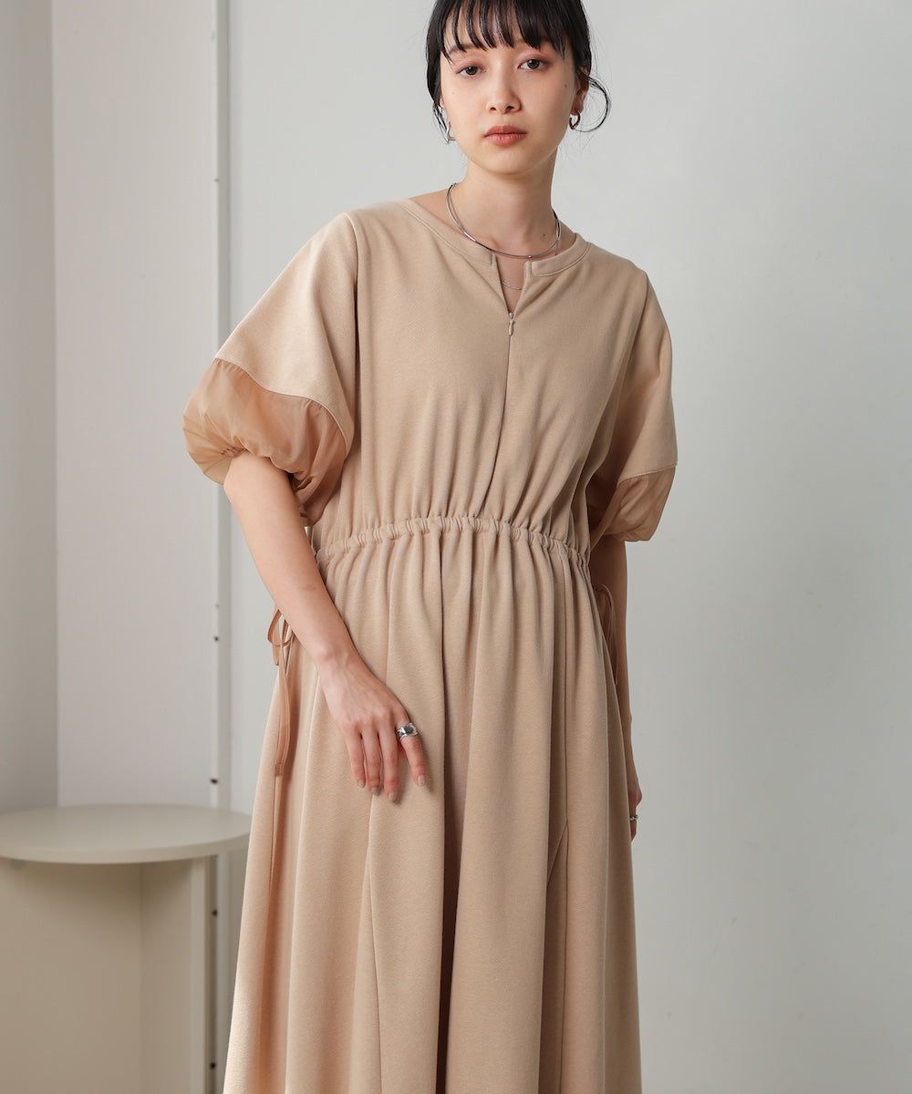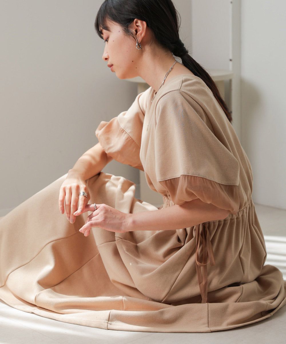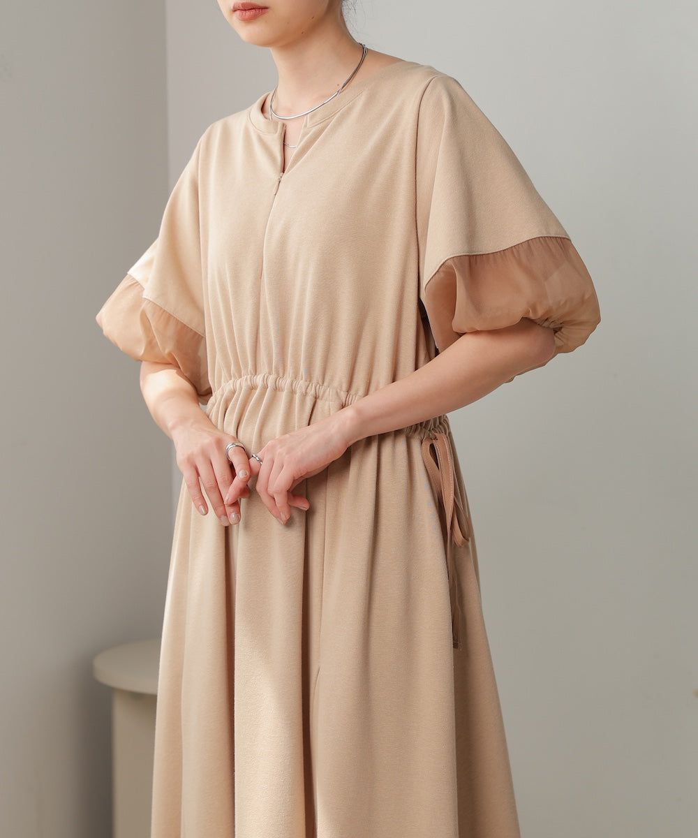 日本 Bab - 2way前後穿輕盈泡泡袖束腰洋裝-卡其