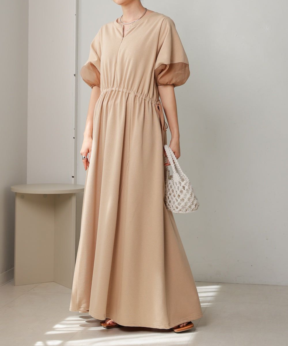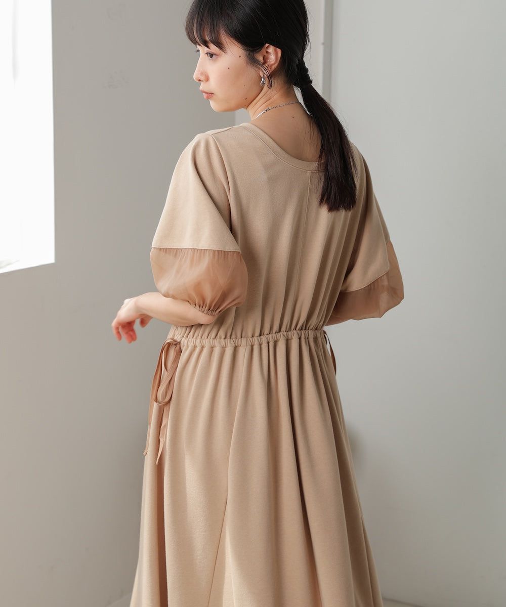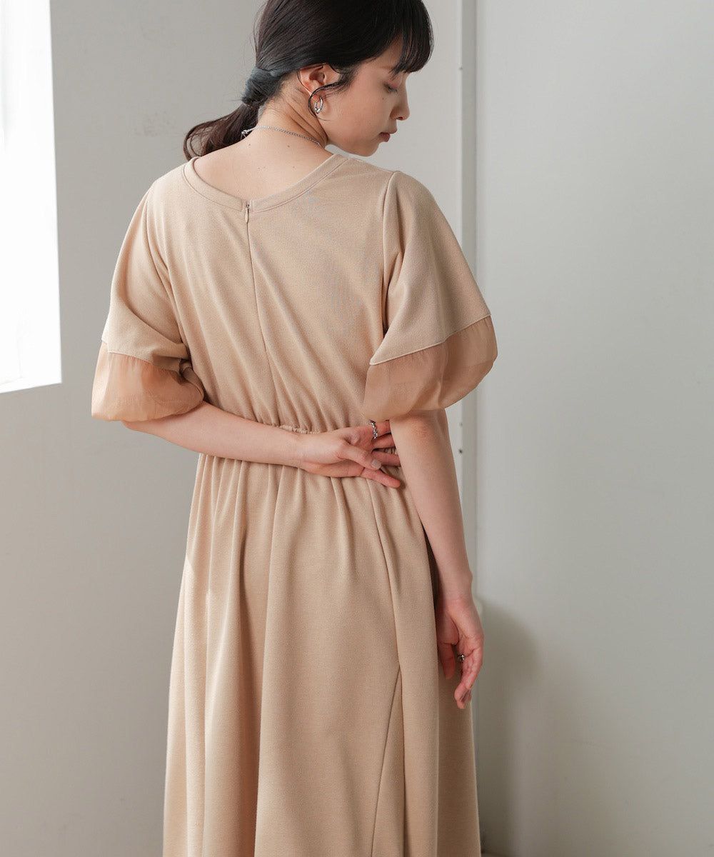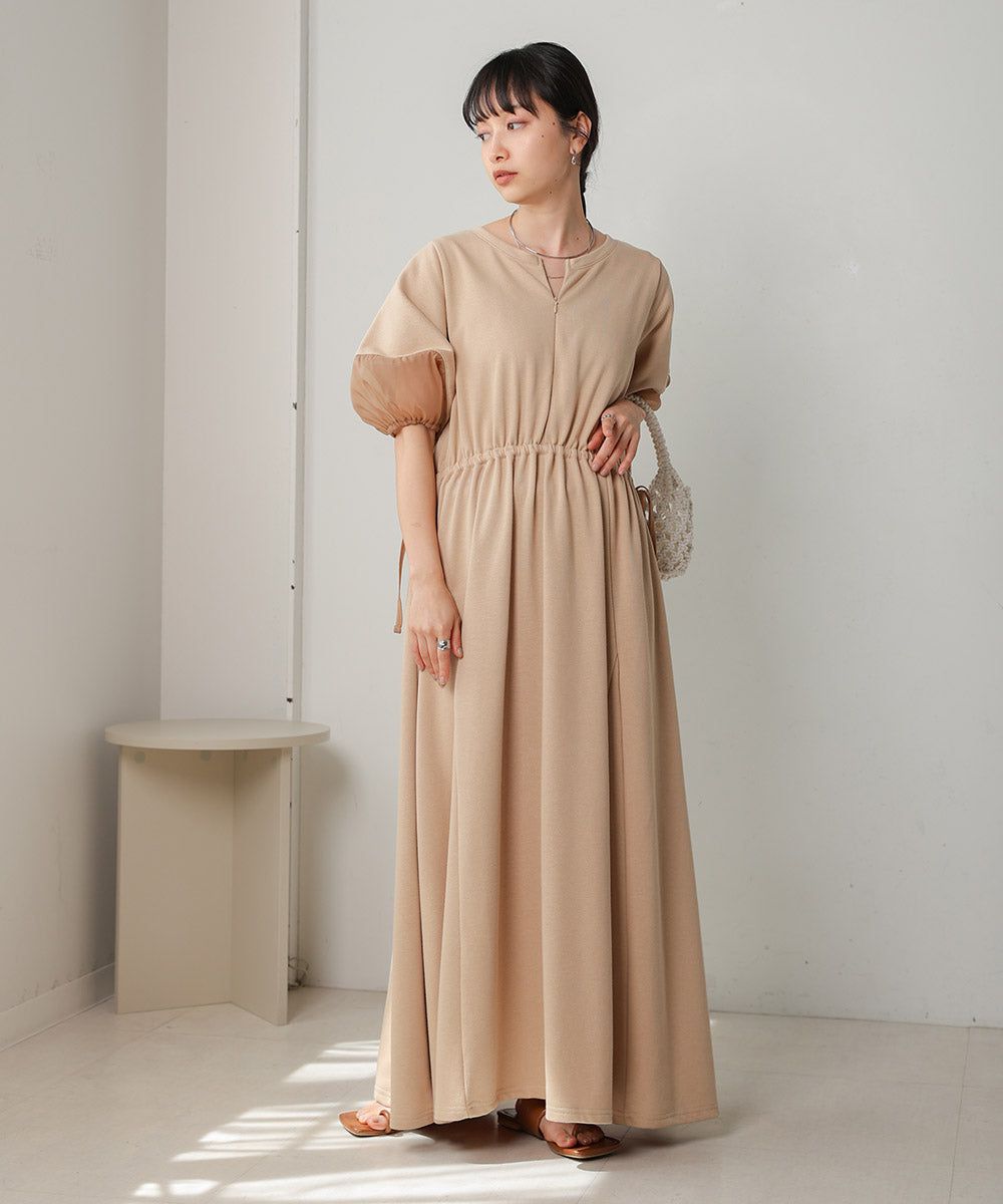 日本 Bab - 2way前後穿輕盈泡泡袖束腰洋裝-卡其