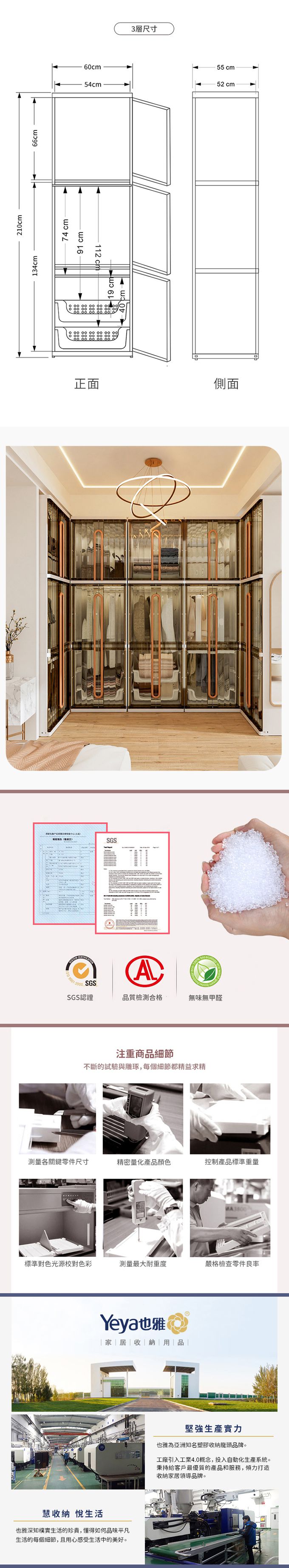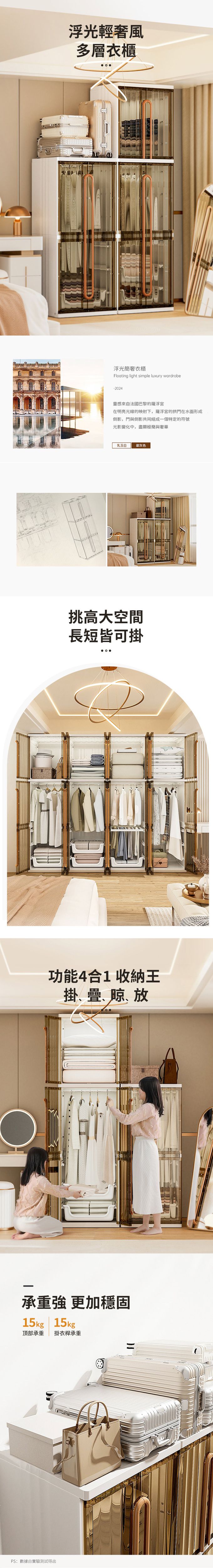 60面寬浮光輕奢風三層衣櫃(附2掛衣桿)-DIY