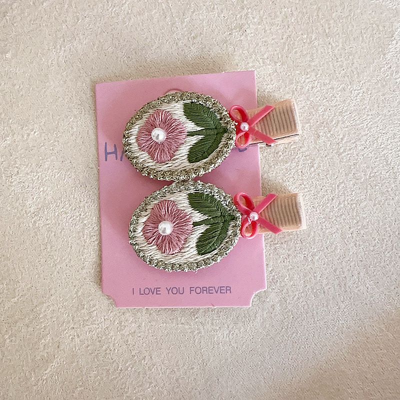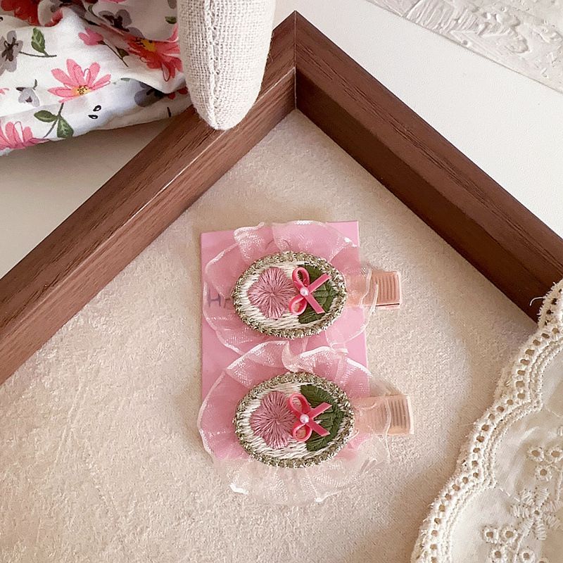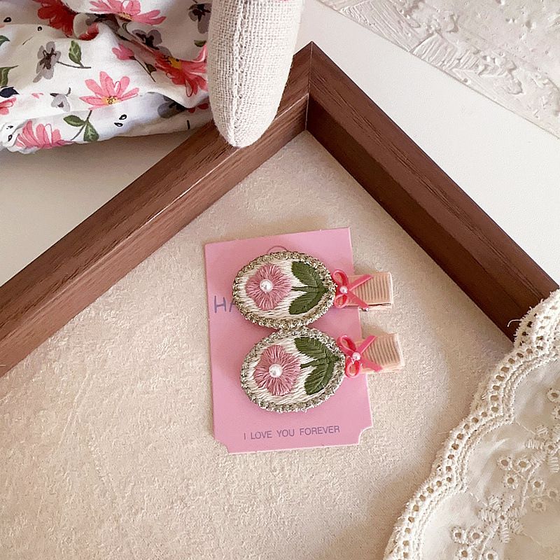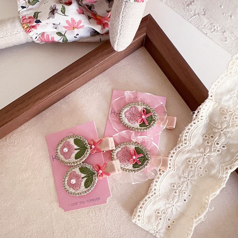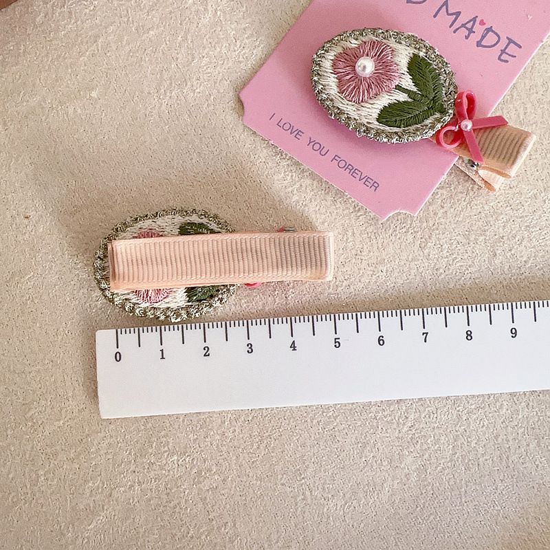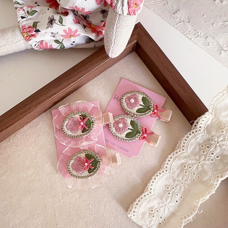 法式花朵刺繡髮夾-荷葉邊款2入組