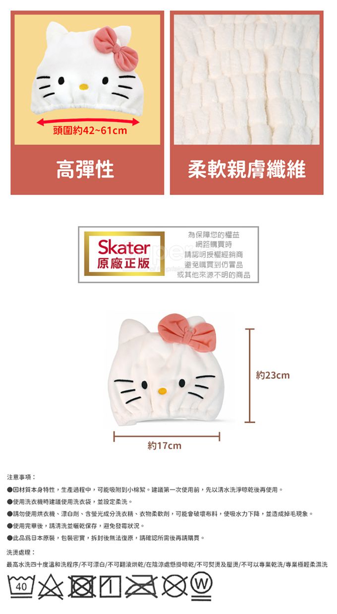 詳細尺寸:約17x23cm (攤平) 頭圍:約42cm~61cm