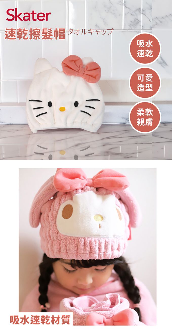 日本 SKATER - Skater 速乾擦髮帽-美樂蒂