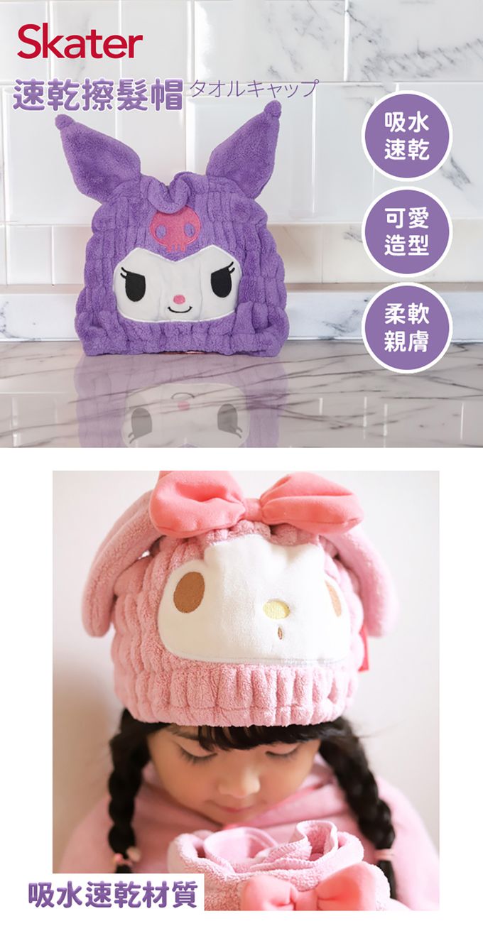 日本 SKATER - Skater 速乾擦髮帽-美樂蒂