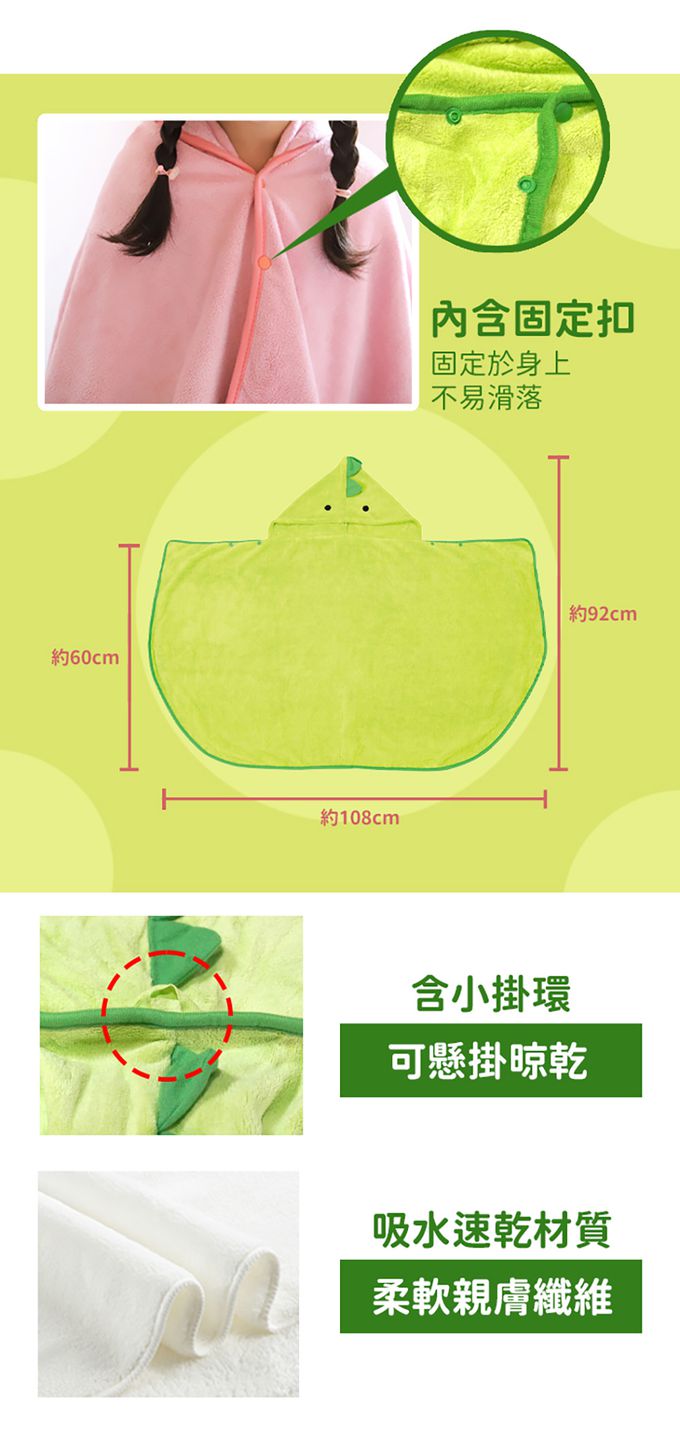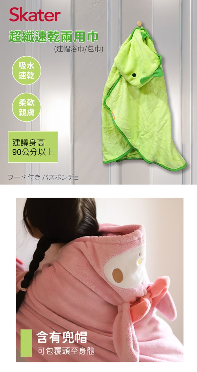 兜帽可將頭至身體包覆住,亦可做兒童包巾。