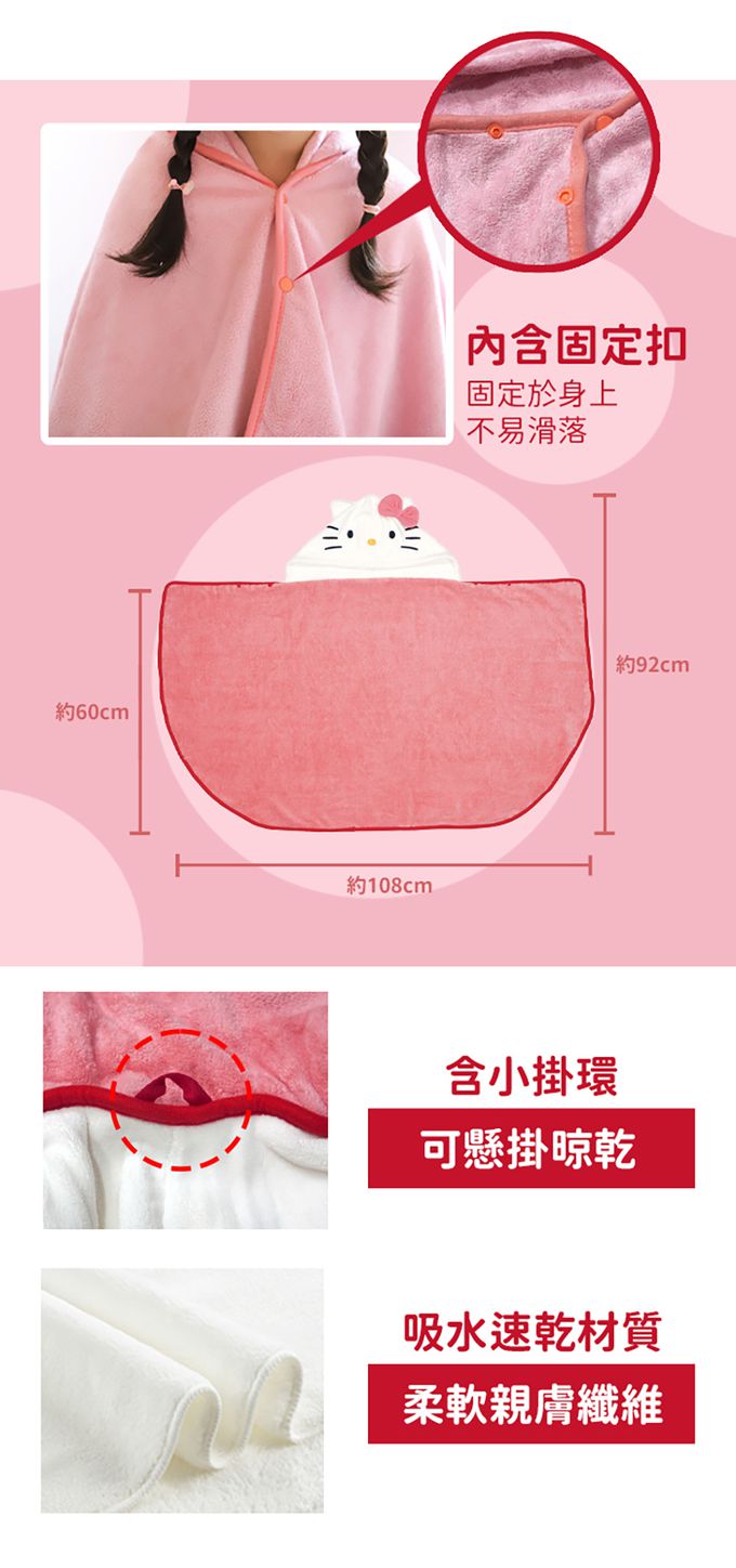 兜帽可將頭至身體包覆住,亦可做兒童包巾。