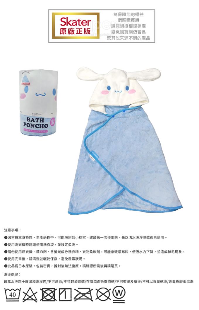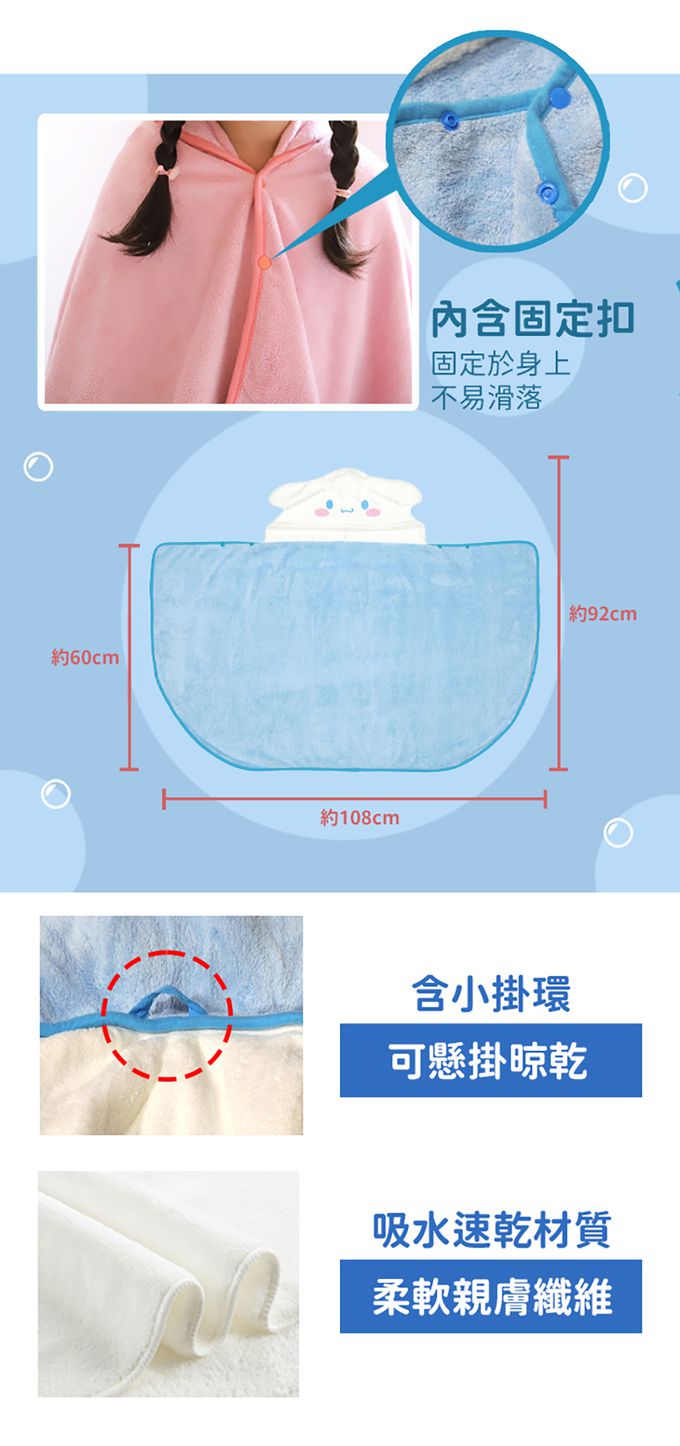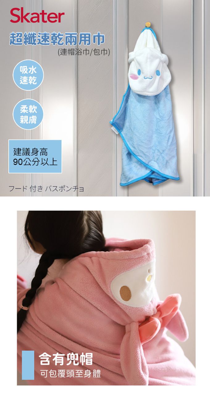 兜帽可將頭至身體包覆住,亦可做兒童包巾。
