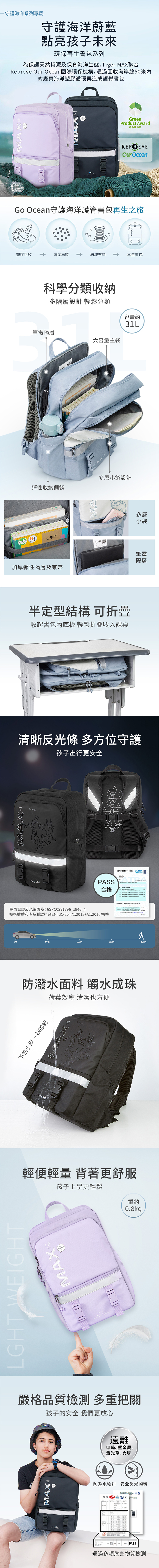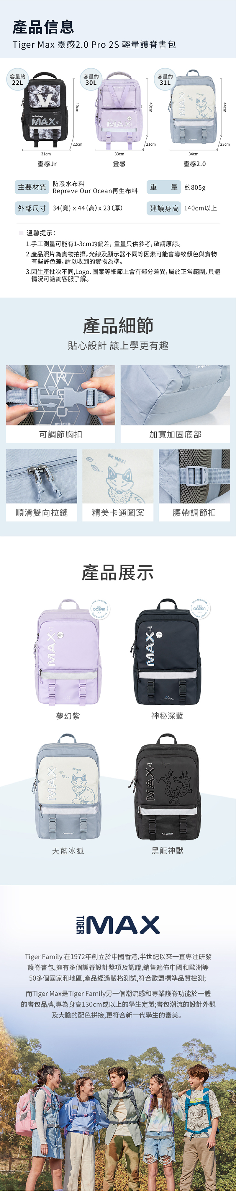 Tiger Family - MAX2.0靈感守護海洋系列超輕量護脊書包 Pro 2S - 夢幻紫-(贈品:送Ipad套或功課袋+註冊送課程券)-款式隨機