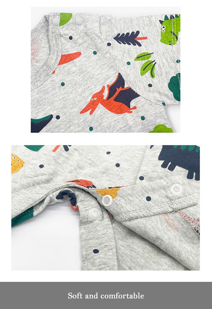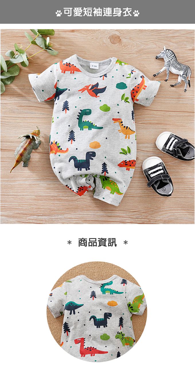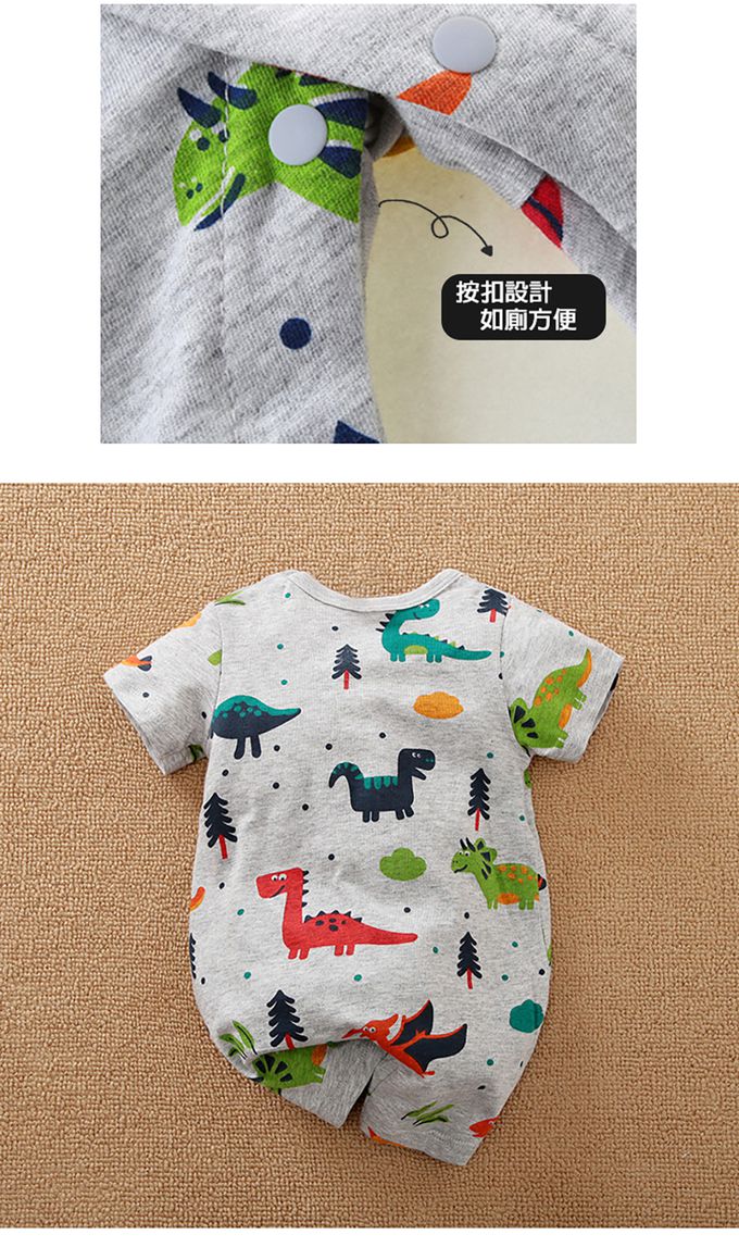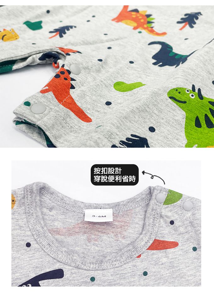 棉質短袖包屁衣 短袖嬰兒服-麻灰恐龍