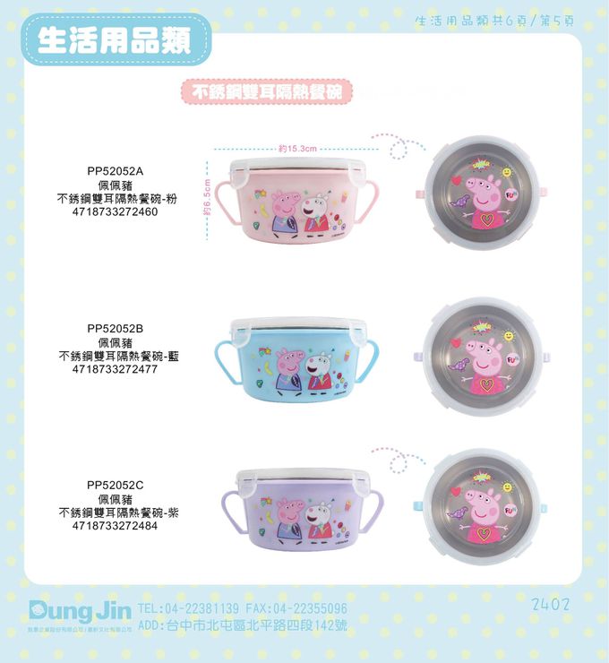 品名:佩佩豬 不銹鋼雙耳隔熱餐碗