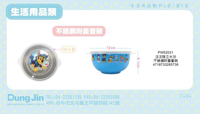 品名:汪汪隊立大功 不銹鋼附蓋餐碗