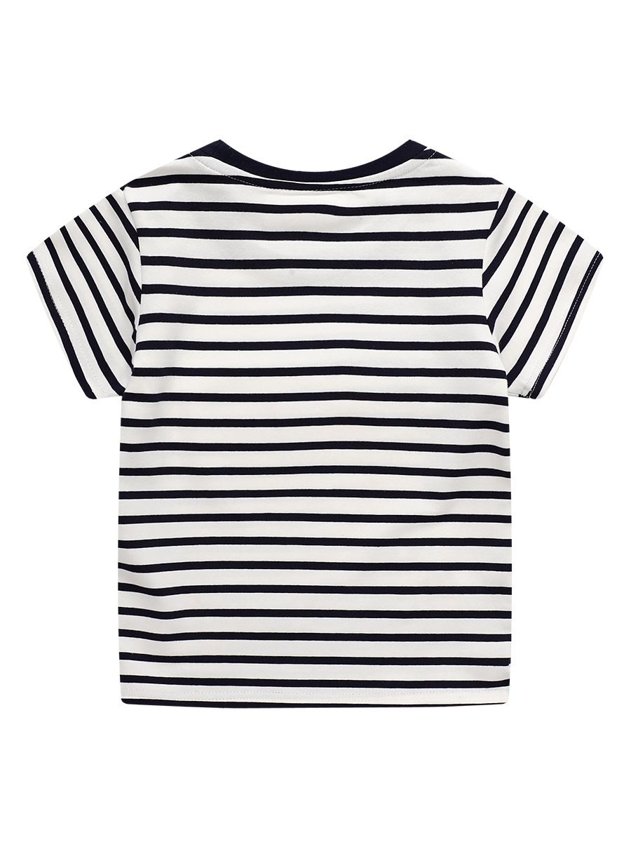 Jumping meters - 棉質圓領短袖上衣-太陽花花-黑白條紋