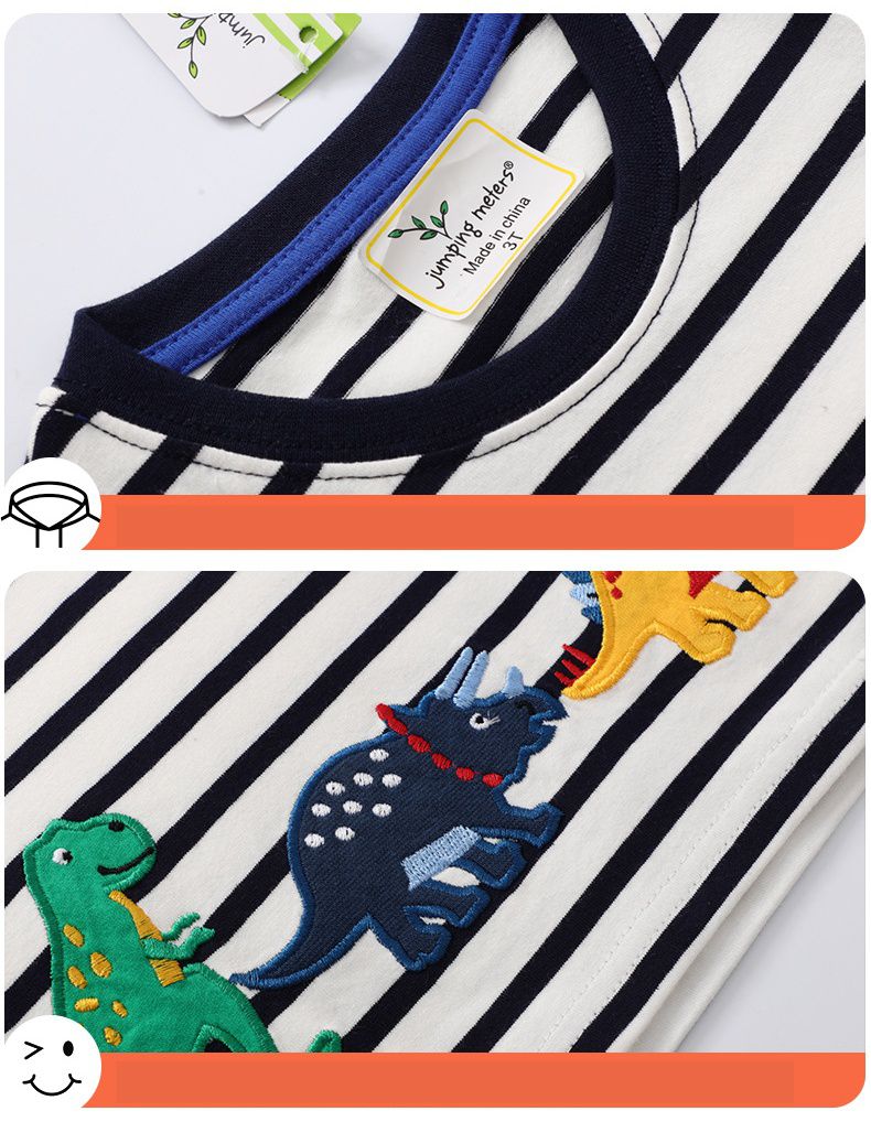 Jumping meters - 棉質圓領短袖上衣-恐龍工程車-白色