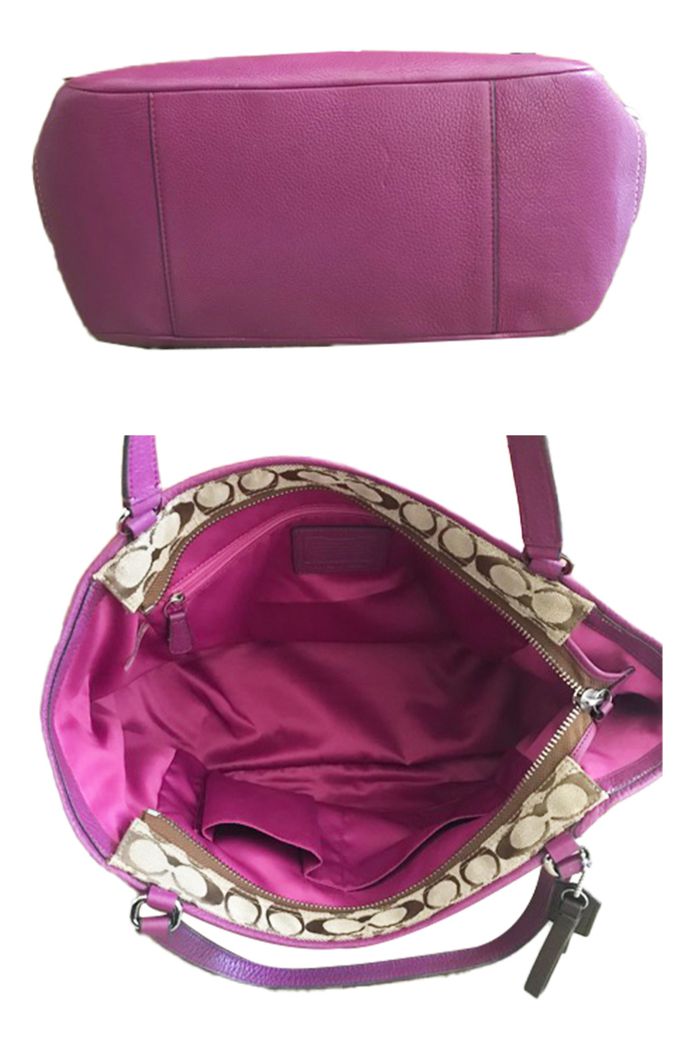 織紋拼接皮革肩背托特包 (卡駝紫邊)