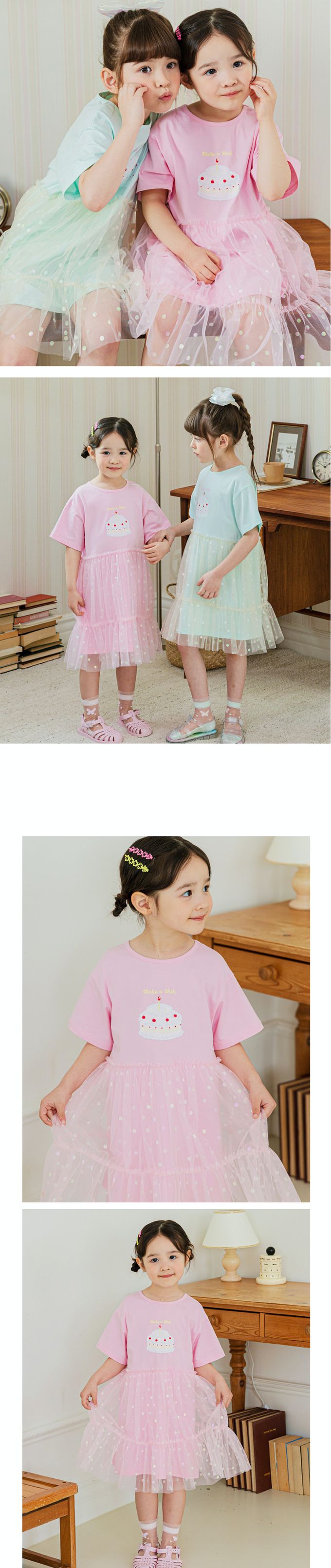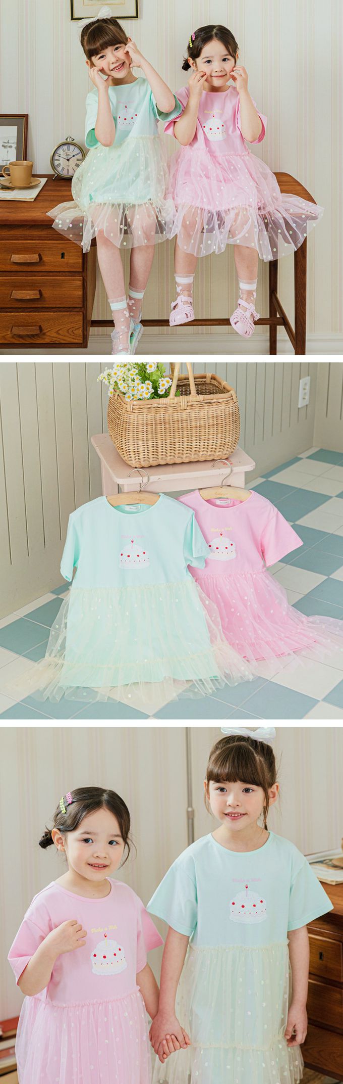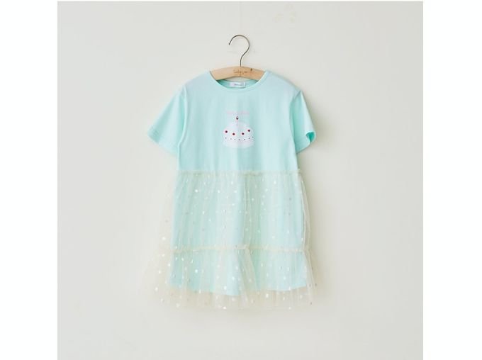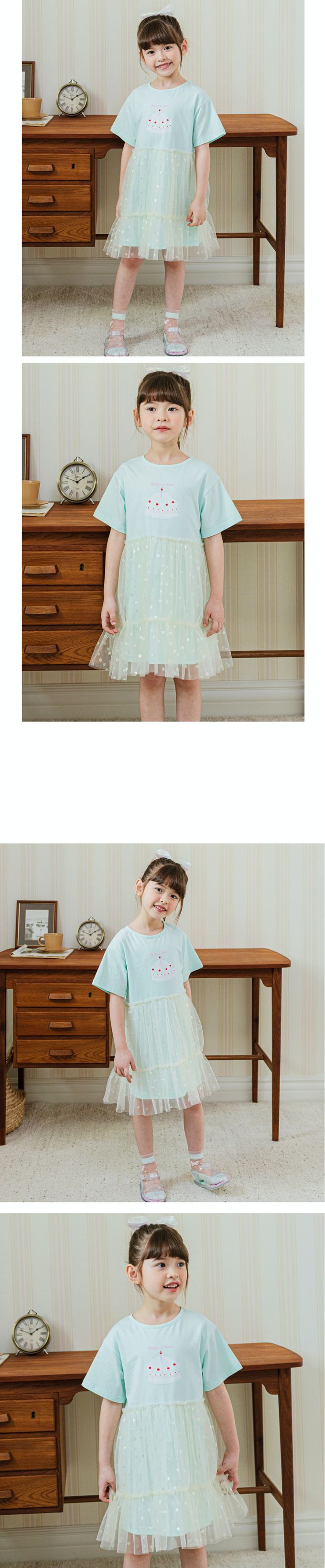 韓國 Bebezoo - 美味蛋糕網紗點綴連身洋裝-湖水綠