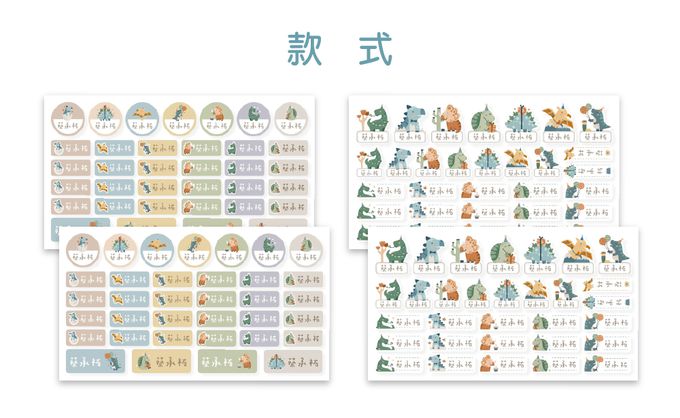 多功能造型姓名貼-風格插畫-派對恐龍 (綜合尺寸)-132小張