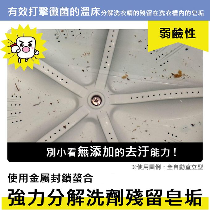●溶解後產生濃密泡深層去污力. 強力分解附著在洗衣槽的陳年污垢。